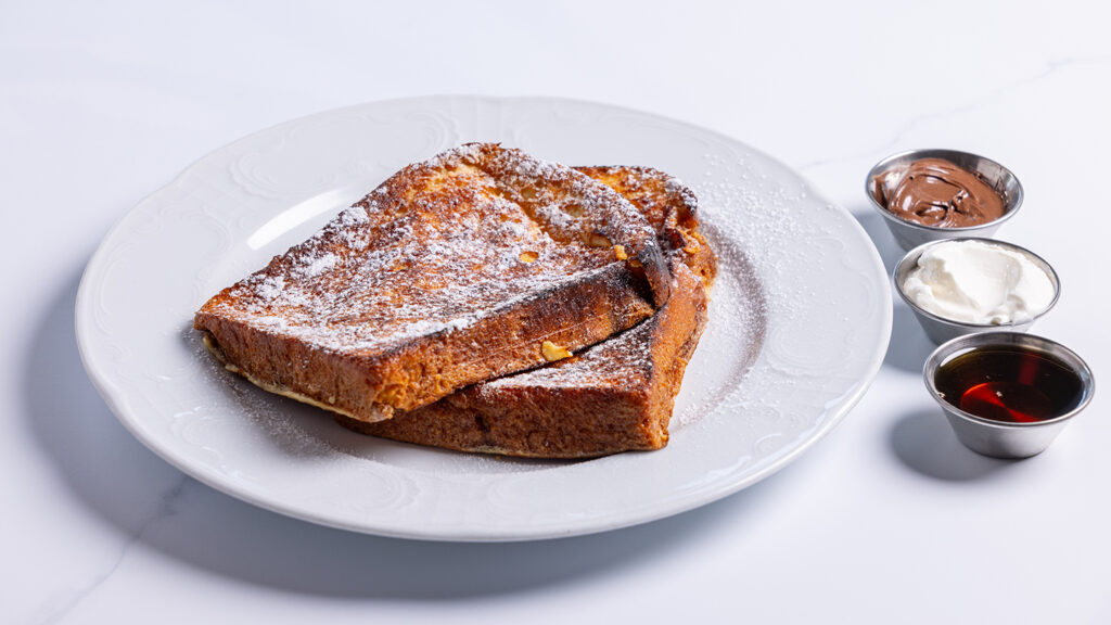 מוגש עם סירופ מייפל, קרם פרש ונוטלה.